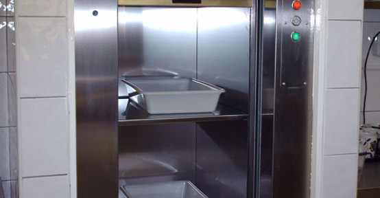 Dumbwaiters are small freight Elevators (or lifts) not intended to carry People or live Animals, but for Objects & Food items. Small lifts installed in Hotels' Kitchens for transferring cooked hot food, raw materials etc. to various pantries at all floors in multi-storied hotels, large households, marriage halls, restaurants, etc. Dumbwaiters for kitchens are usually made of stainless steel so that they are not affected by steam, hot food, water, etc. Dumbwaiter are also used in hospitals and departmental stores to carry stores to various levels in the building. These can also be of S.S. or M.S or GLASS.